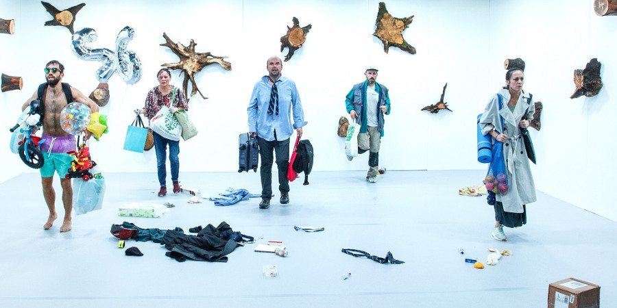 Sieben Darsteller:innen laufen ununterbrochen – und treten doch nur auf der Stelle. In KRIZE untersuchen Žiga Divjak und sein Team unser globales Wirtschaftssystem, das auf Ausbeutung und Wachstum aufgebaut ist.