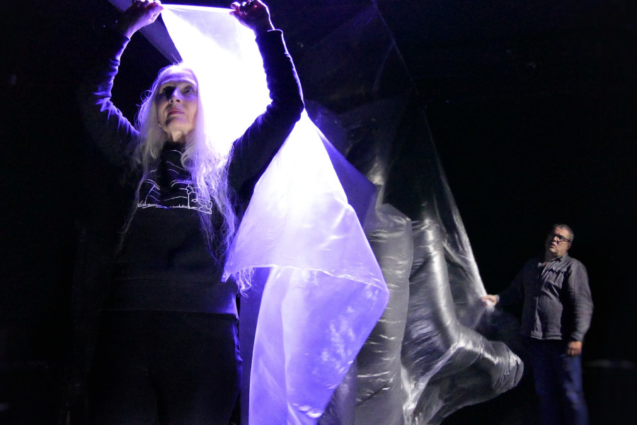 KnAM Theater is a free Russian theater company founded in 1985 by Tatiana Frolova in Komsomolsk on the Amur River. In her works, which are always created collectively, she combines video, film, photography, sound, and acting, interweaving individual with collective (Russian) history with great cleverness. The euro-scene Leipzig shows the work of Tatiana Frolova in cooperation with the Festival Sens Interdits (Lyon) for the first time in Germany.