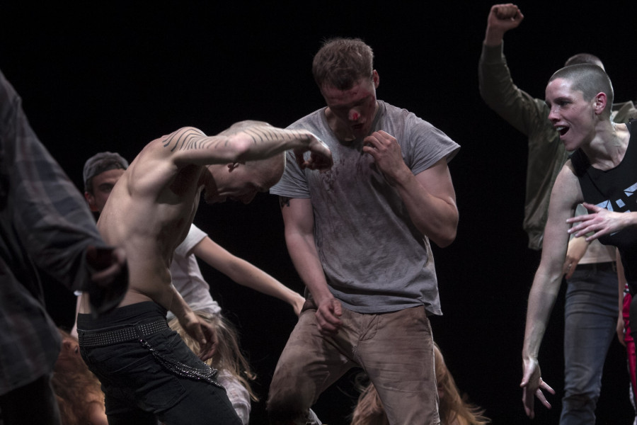Gisèle Vienne, Austrian-French expert for emotional abysses and ecstatic states, places the audience in a trance for the festival closing with her largest dance piece to date: CROWD. Here 15 youths are celebrating in the turmoil of an emotional rave party. Based on film techniques, their movements are expertly slowed down to slow motion, stylized, broken up, reversed or repeated the way animated GIFs are. Hypnotized by a light that constantly remodels the bodies, our attention is directed towards each individual member of this fleeting micro-society. In the rush of the rhythm of music and bodies, subtle moments of love and intimacy are mixed in - but also aversion and violence. Fates clash, whereby one person hugs another, rejects or supports them. The audience is thus drawn into an almost hallucinogenic experience. Emotions are literally running high and telling stories that the author Dennis Cooper wrote as a subtext under Gisèle Vienne’s powerful language of images and bodies. The playlist with rave-culture classics is provided by Peter Rehberg, the pioneer of free experimental computer music who died unexpectedly in 2021. CROWD is a contemporary and simultaneously cathartic and archaic dialogue with our inner selves. An overwhelming theater experience!