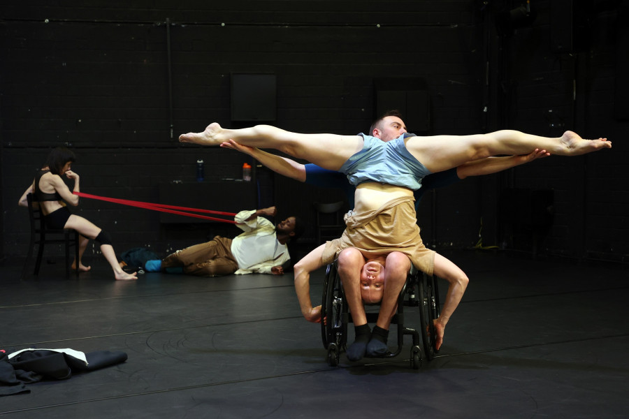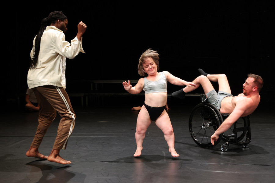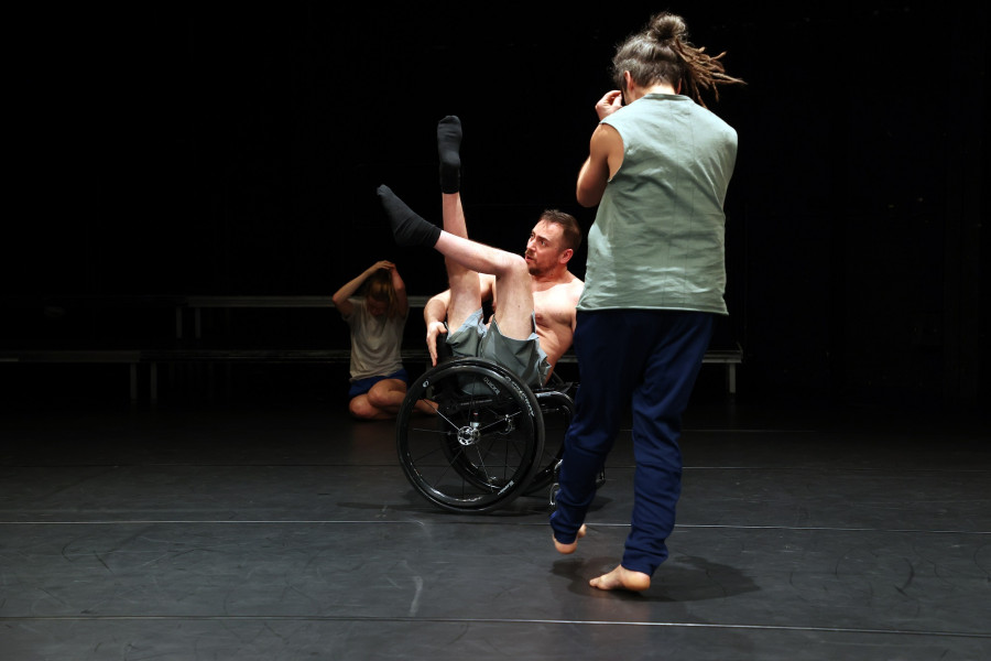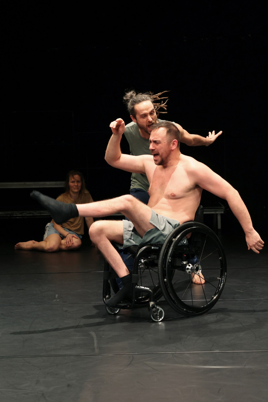 The piece develops cautiously. The dancers are completely one with their bodies, the arms, legs, torso, the limits that they have. The borders are tangible; that is communication. They are present, in the place, in the moment; that means, they have time. They knead, stretch and crumple them; that's how it has an effect. Completely peacefully. Tense up, relax, sense and nonsense, stabile, unstable. Rhythm that comes from the inside and outside. They create balances. Dance. The result is a choreographically polished, coherent work that understands inclusion to be human togetherness and diversity.