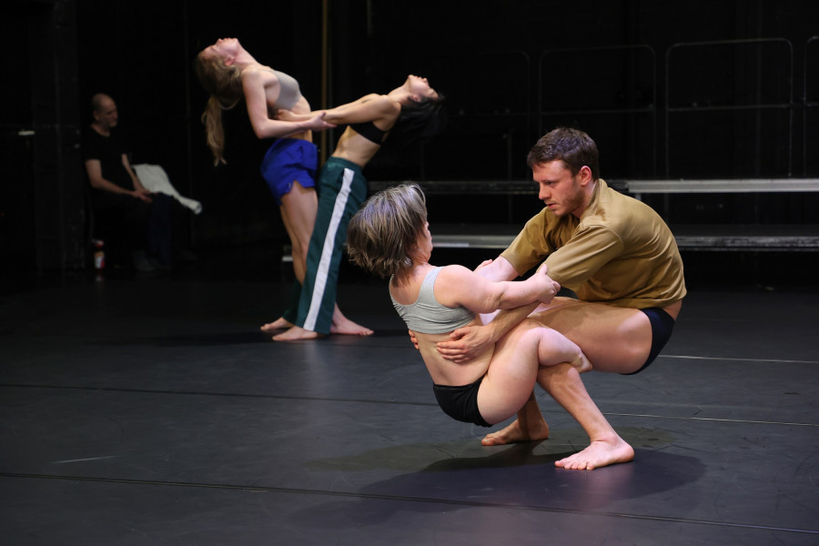 By + with Aaron Samuel Davis, Florent Devlesaver, Gabrio Gabrielli, Paulina Porwollik, Leisa Prowd, Tamara Rettenmund, Nora Ronge, Andor Rusu, Young-Won Song, Károly Tóth Co-Creation Yanel Barbeito, Carolin Hartmann Choreography Adrienn Hód Artistic collaborationt Csaba Molnár Music Ábris Gryllus Stage + Costumes Anna Lena Grote Lighting design Christian Kemmetmüller Dramaturgy Gregor Runge Dramaturgical collaboration Ármin Szabó-Székely Production management Alexandra Morales, György Ujvári-Pintér Production assistance Emily Masch, Andy Zondag Equipment assistance Naomi Darleen Schade Stage manager Lena Maire