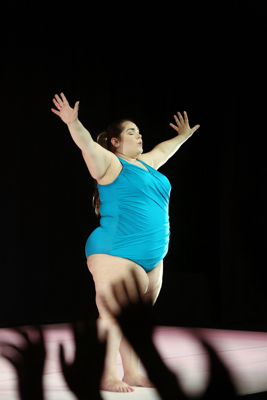 When is a body "beautiful"? What makes it aesthetically pleasing and socially acceptable, on stage or in a streetcar? The Italian Silvia Gribaudi takes on the subliminal norms in art and society that construct the myths of elegance and grace. They especially apply to the female body, which the former ballerina from Torino liberates with espirit and humor from normative role models. For example, who would come up with the idea that the performer Claudia Marsicano, with her extensive corpulence, could be a super energetic fitness instructor? That her weighty presence gets the audience to move like this and start laughing? What distinguishes Gribaudi is not only her commitment but equally her authentic, irresistible humor. A fourth wall between the stage and auditorium doesn't have a chance to be raised. In R. OSA, the audience practically becomes a protagonist and has fun participating in the physical exercises. It can be this relaxed, this enthusiastic when formatted perspectives are broken up! Because R. OSA means as much as: Rosa dares to do it. She dares to do what society forbids her to trust herself to do. The risk and its challenge are mastered by Marsicano and the audience together and full of joy in "ten exercises for a new virtuosity", which is inspired by Jane Fonda’s aerobics and the voluptuous figures of the Columbian painter and sculptor Fernando Botero. R. OSA demonstrates: What seems to be mutually exclusive actually creates plenty of good humor!