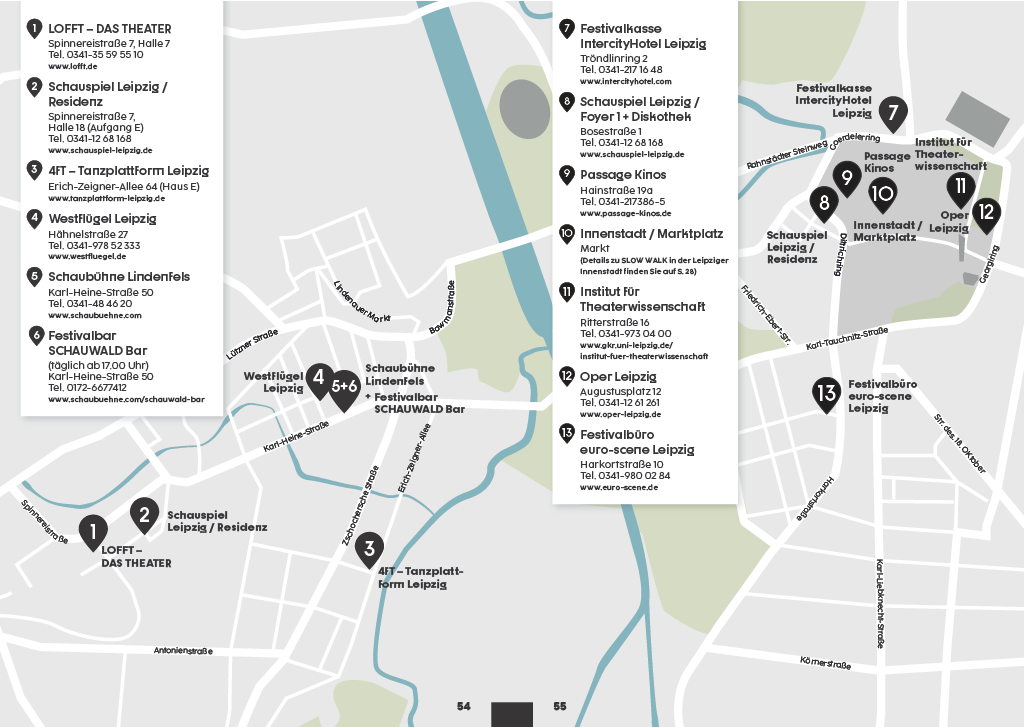 Tel. 0341-97 85 23 33 (Das Telefon ist i. d. R. nur jeweils 2 Stunden vor Vorstellungsbeginn besetzt.)